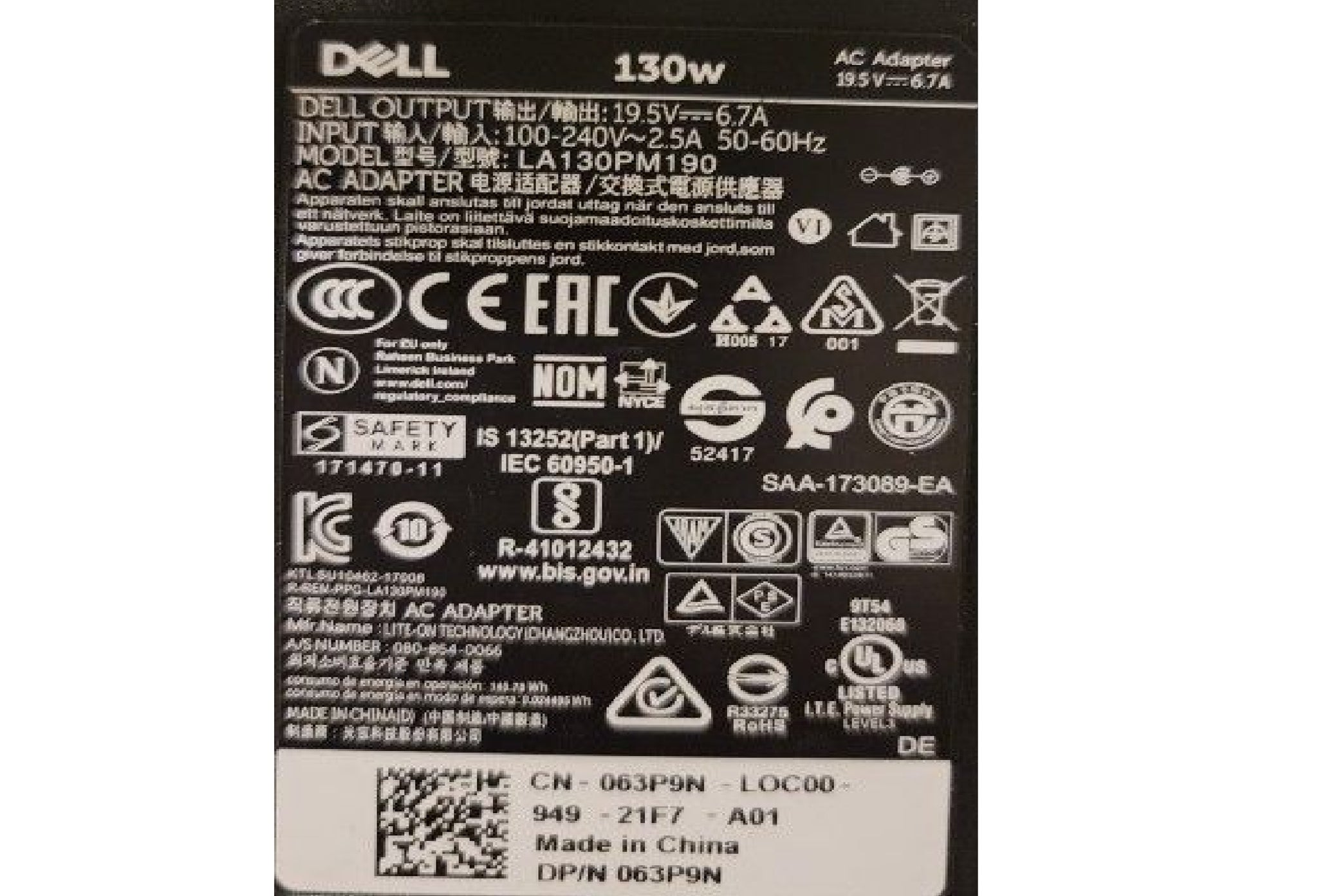 Dell Inspiron 13 7347 13 7348 7459 Dell Precision 5520 Dell Precision Mobile Workstation 5510 M2800 M3800 Dell XPS 15 9530 9550 9560 Dell P/N: DA130PM130 HA130PM130 6TTY6 0RN7NW 0V363H 332-1892 ADP-130EB BA, Dell Inspiron 13 7347 13 7348 7459, Dell Precision 5520, Dell Precision Mobile Workstation 5510 M2800 M3800, Ā DA130PM130 HA130PM130 6TTY6 0RN7NW 0V363H 332-1892 ADP-130EB BA, 06TTY6, 0RN7NW, 332-1829, ADP-130EB BA, ALW17D-718, DA130PM130, HA130PM130, RN7NW, TX73F, V363H