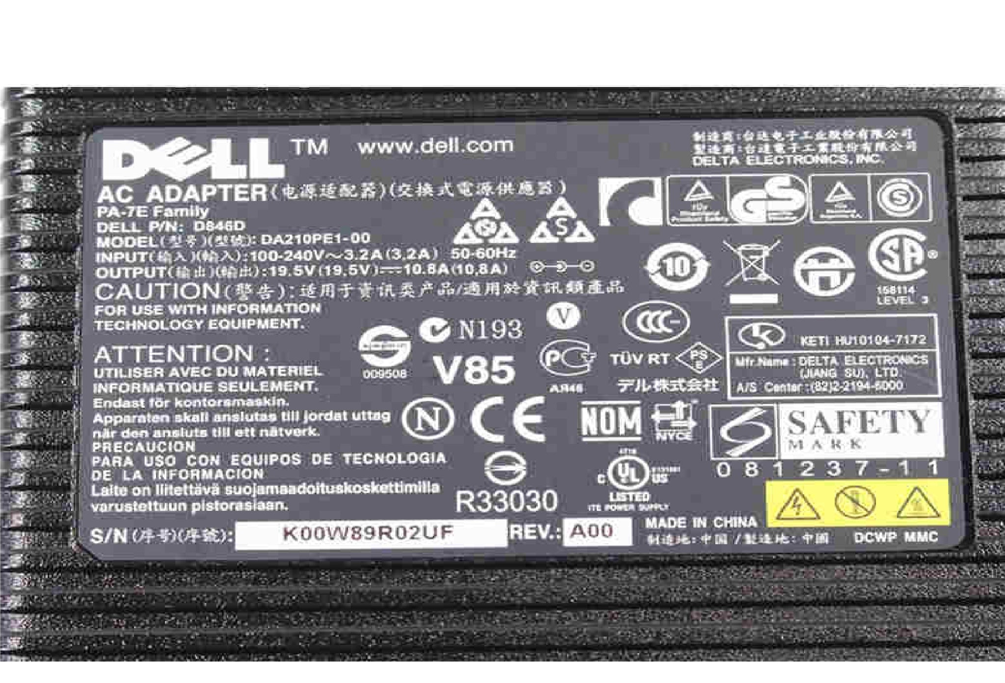 Original 210W Dell Laptop charger for Dell Precision M6400 M6500 Alienware M17XR2 M17X D846D DA210PE1-00 PA-7E Family 19.5V 10.8A