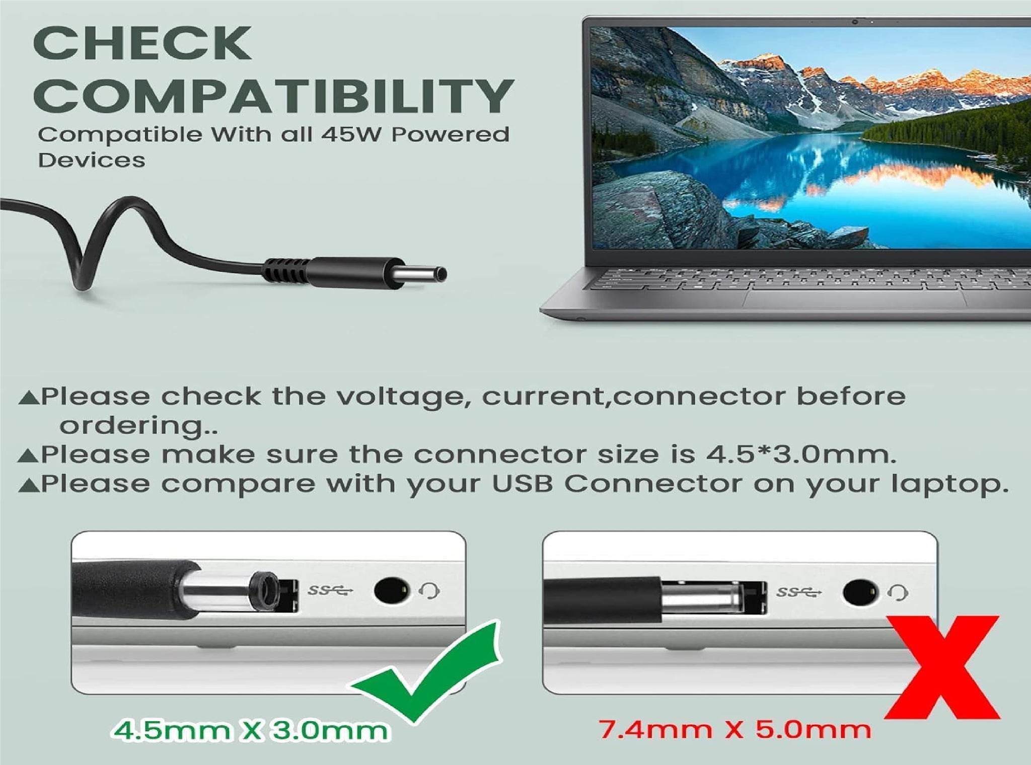 We offer the best price for Dell Inspiron Latitude XPS Vostro 45 Watt 20V 2.25A AC Replacement Adapter CDF57 0CDF57 in UAE.