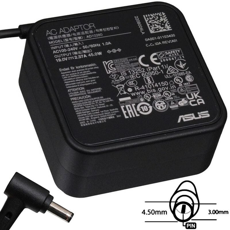 Original Asus 19v 2.37a 4.5mm x 3.0mm charger, please note this is the Asus 45w ac adapter which has the connector tip that measures 4.5mm outside diameter and 3.0mm inside diameter and has a pin located in its center, as per picture this is a rarer Asus power adapter and is not commonly used, so if you need the common Asus 19v 2.37a charger, then this can be found at the bottom.