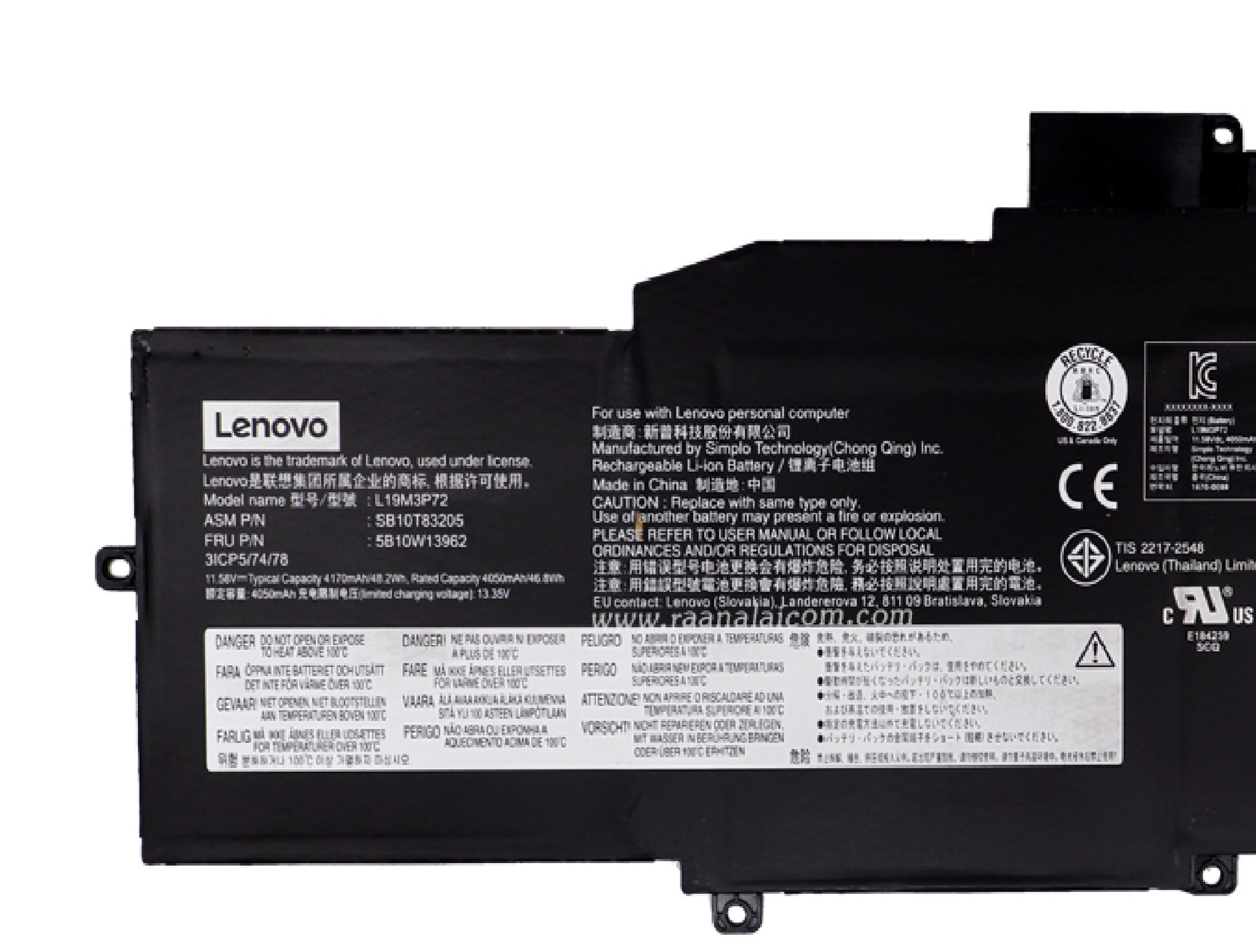 Original L19M3P72 Laptop Battery 48.2Wh 4170mAh 3-Cell 11.58V Compatible with Lenovo ThinkPad X1 Nano Gen 1st 20UN 20UQ Series L19M3P73 L19C3P71