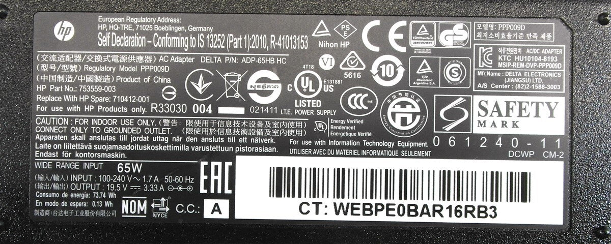 COMPATIBLE P/N : Replacement for 613149-001, 613149-003, 693715-001, 677770-001, 677770-002, 677770-003, DL606A#ABA, PPP009D, ADP-65HB FC chargers..